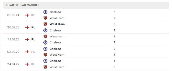Phong độ gần đây West Ham United vs Chelsea