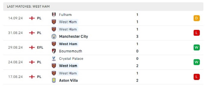 - Phong độ West Ham United