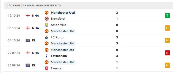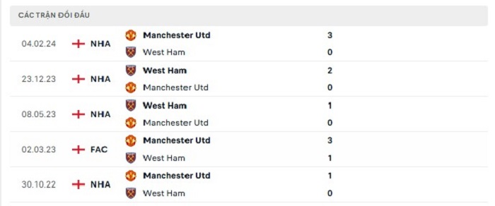 Bảng bóng đá trận đấu West Ham vs Manchester United