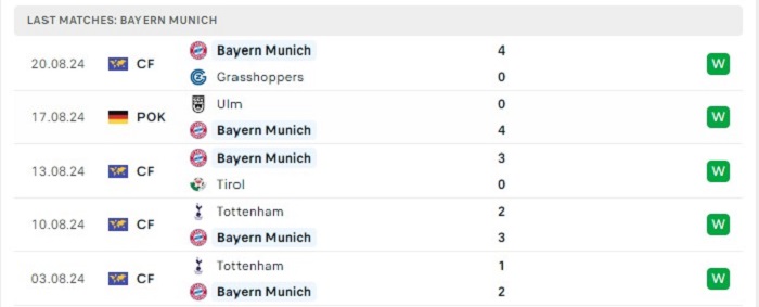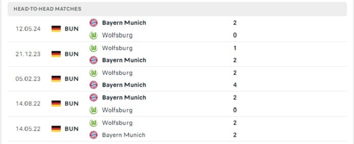 Phong độ gần đây Wolfsburg vs Bayern Munich