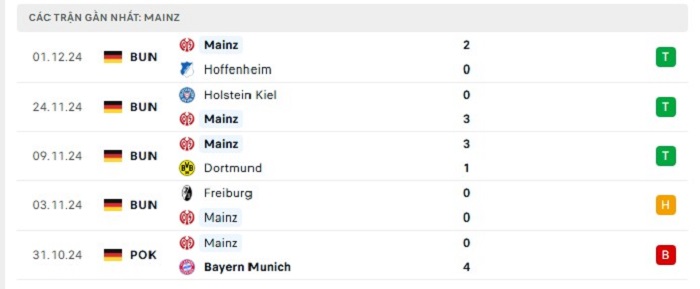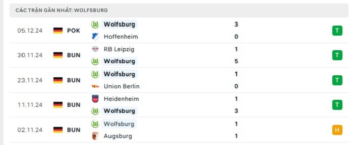 Bảng bóng đá trận đấu Wolfsburg vs Mainz