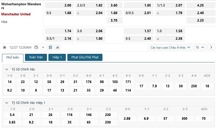 Soi kèo châu Á, kèo chấp Wolves vs Manchester United